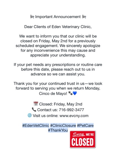 If you have been fired from your regular veterinarian for any reason we will not be accepting you as a client at our practice, as we do not accept any clients who have been fired or owe any of our colleague's money.