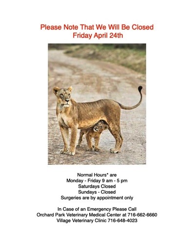 We are not an emergency clinic. We are unable to treat or manage life-threatening emergencies. We are like your primary human doctor: if there is a life-threatening emergency you go directly to the hospital and not your doctor. If emergency surgery is needed, they will be referred back to your veterinarian or to one of the local emergency clinics. If your pet is having a life-threatening emergency please go directly to one of our local emergency clinics, listed below:
